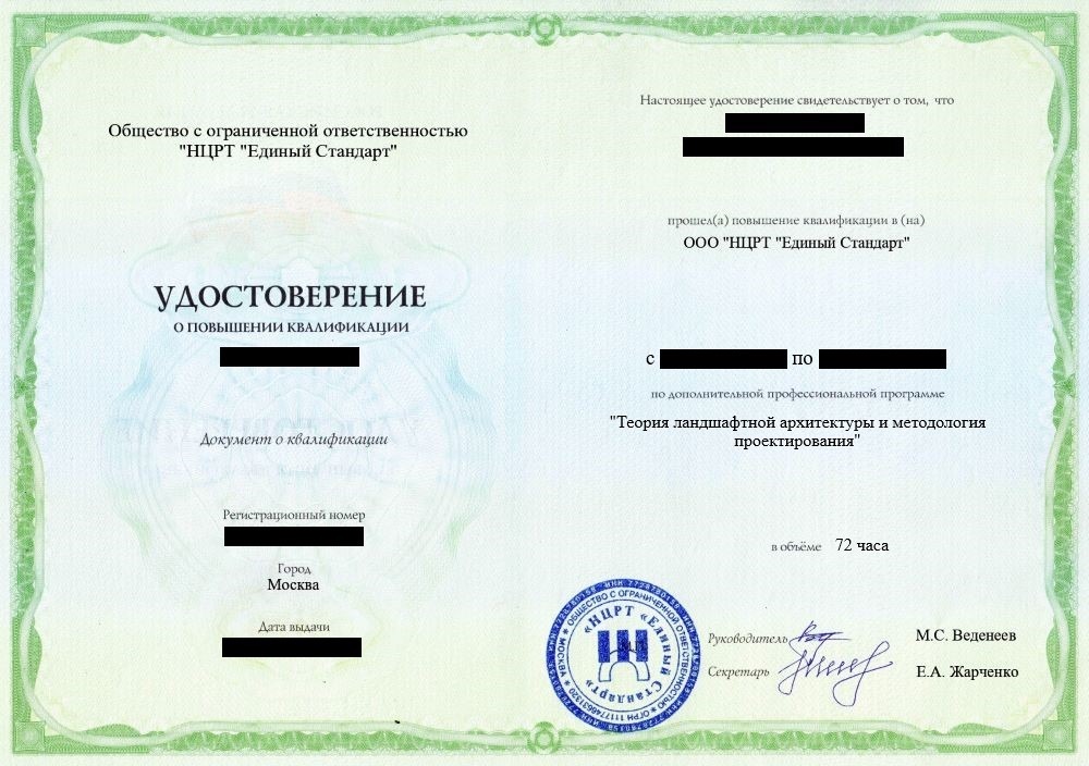 - Удостоверение о повышении квалификации установленного государством образца. Срок действия: 3 года